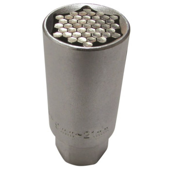 Universal emergency socket designed to grip and remove a wide range of fastener profiles, making it ideal for dealing with rounded, damaged or unknown nuts and bolts. Featuring a special locking pin design, it adapts to most fasteners from 9mm to 21mm and can be used on profiles including Ribe, Spline, Hex, Square, Triangular and Star. Manufactured from durable chrome vanadium for workshop reliability. For hand tools only – not suitable for impact use.