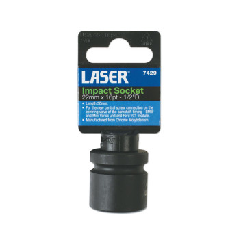 Impact-quality 1/2" drive socket designed for the centring valve of camshaft timing systems on BMW MINI VANOS units and Ford VCT modules. Ideal for professional engine service work, it provides secure engagement on the adjuster/centring valve to help ensure accurate, controlled operation during timing-related repairs. Manufactured from chrome molybdenum for impact strength and finished with a black phosphate coating for corrosion resistance.