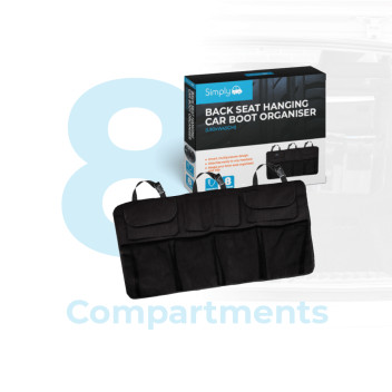 Keep your boot tidy with this durable 8-pocket hanging organiser. It attaches to the back of your rear seats using headrest straps and features mesh and full-size compartments for storing travel essentials.