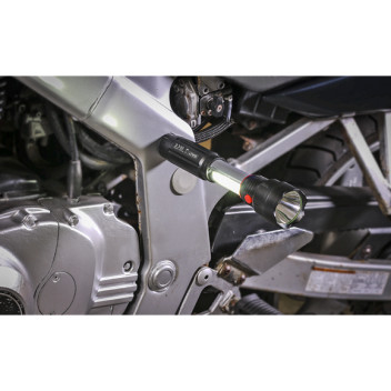 Compact twin-function torch and inspection light featuring a powerful 3W LED directional torch and a 3W COB LED inspection lamp. Simply extend the body of the torch to automatically switch on the COB inspection light, making it ideal for workshops, garages, roadside use, and tight working areas where reliable illumination is essential.