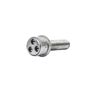 High-security locking wheel bolt set with a free-spinning outer collar to prevent tool grip and forced removal. Manufactured from hardened, tempered steel for strength and durability, with a corrosion-resistant finish. The unique head design is resistant to drilling and punching.