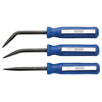 This 3-piece mini pry bar set is designed for separating small components, releasing electrical connectors and tackling delicate prying tasks in tight spaces. The kit includes a straight pry bar and two angled pry bars at 27° and 55°, giving improved versatility and access. Constructed from strong chrome vanadium steel and finished with a black oxide coating, the blades resist wear and corrosion. Each pry bar features a comfortable plastic handle with an integrated pocket clip for convenient everyday carry.