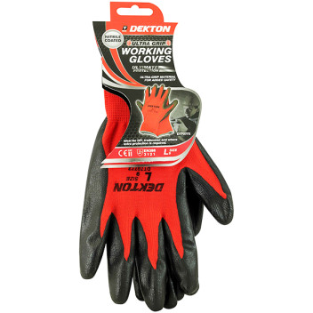 Dekton Ultra Grip Nitrile Work Gloves – Large Black/Red