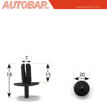 The AUTOBAR TF139 trim clip is tailored for BMW vehicles, offering precision fitment and firm retention for interior and exterior trim applications. Its ribbed stem ensures anti-vibration grip, while the broad 20mm head guarantees a flush, secure hold.